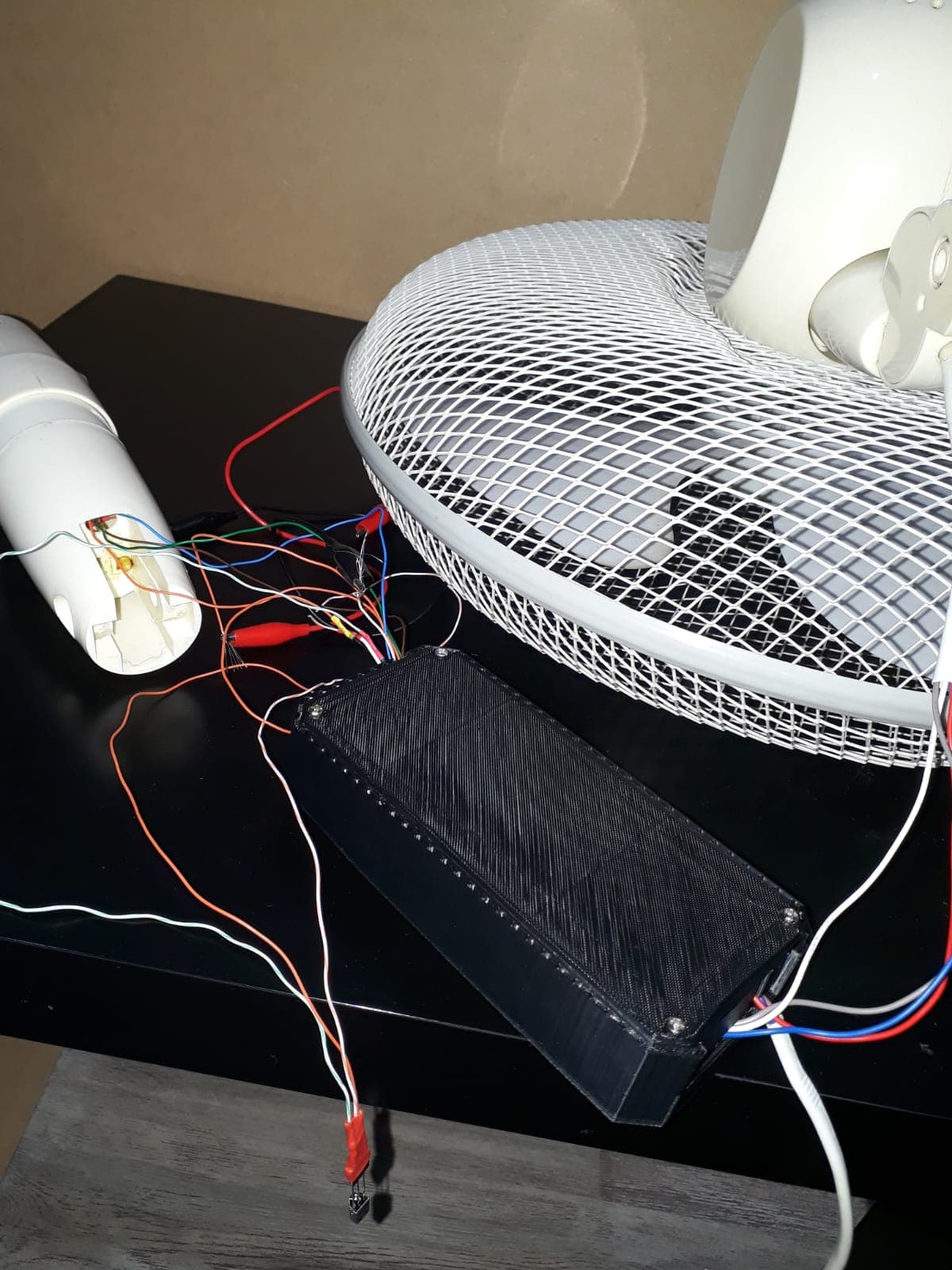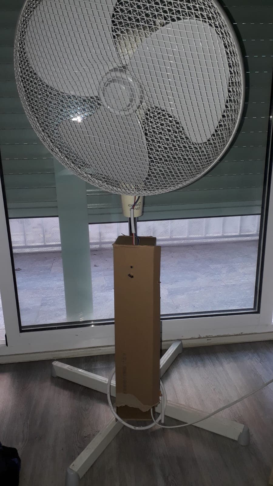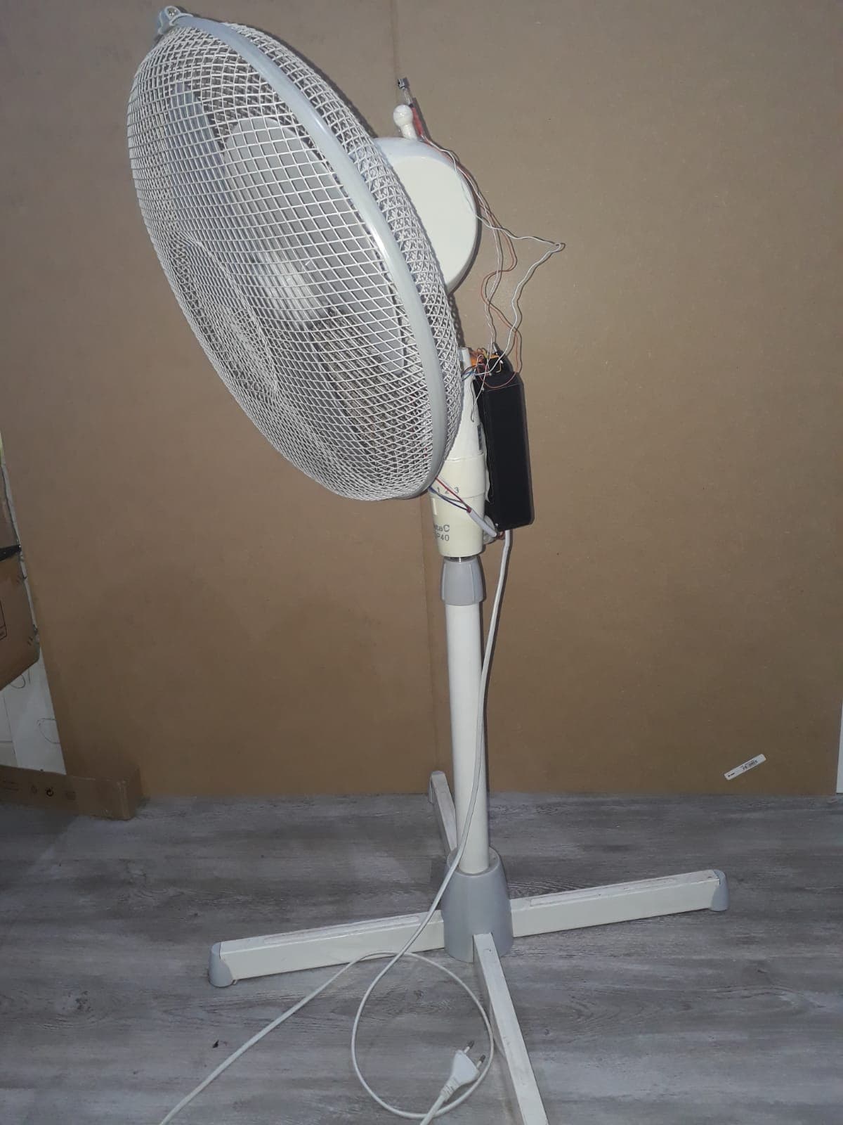 Right now the microcontroller needs a 9v battery to work, I have planned to add an AC-DC converter, I have already one, but I prefer to use in the second version of my fan.